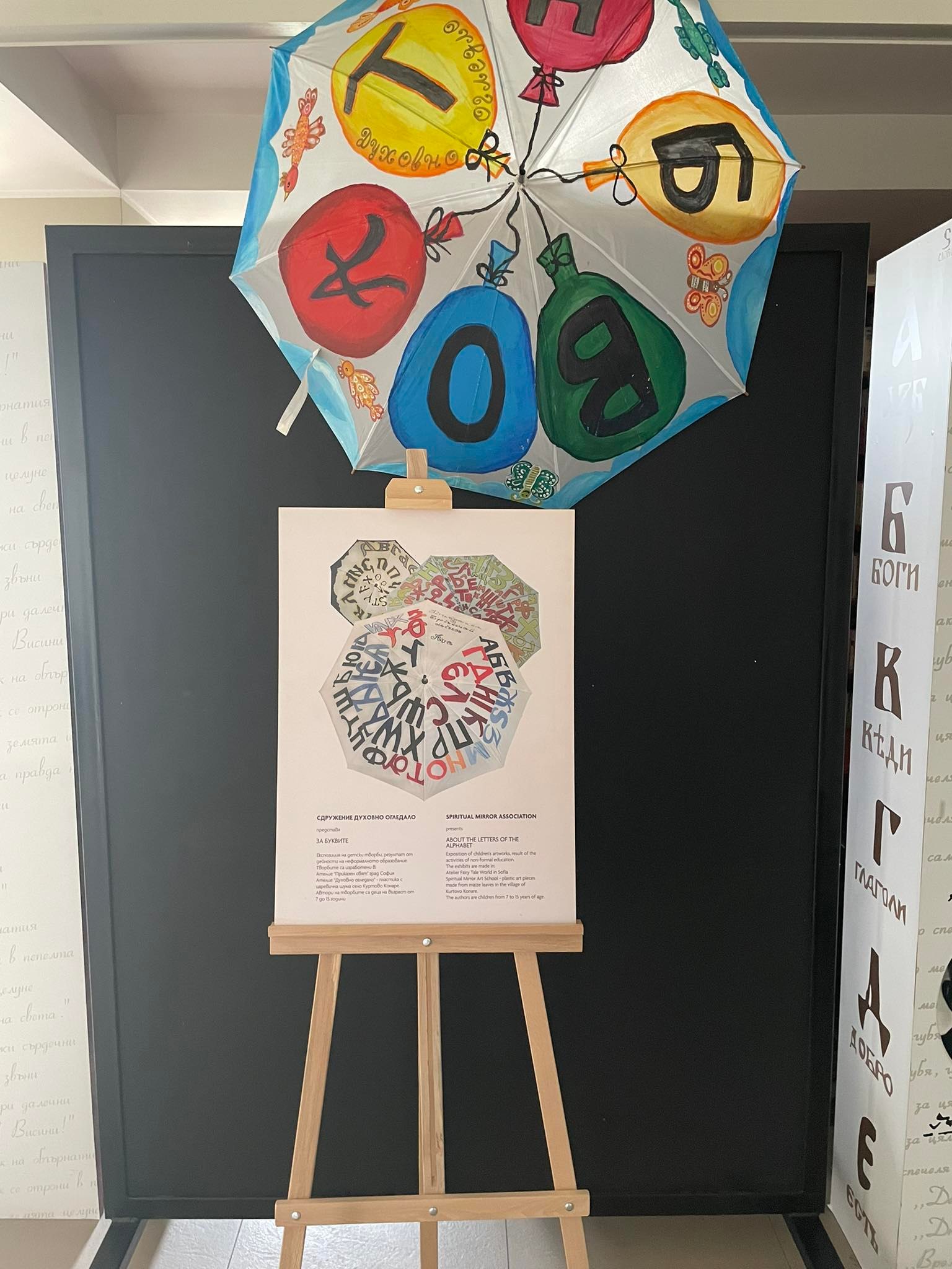 На 23 май 2022 година в Културно-информационния център на Република България в Скопие бе отбелязан празникът 24 май – Ден на светите братя Кирил и Методий, на българската азбука, просвета и култура и на славянската книжовност. Директорът на БКИЦ – Скопие, Антония Велева, честити на всички присъстващи всенародния празник и откри изложбата „За буквите“ – творческа работа на деца от България, посветена на българската азбука, представляваща 32 пана, изработени от царевична шума, изобразяващи буквите от кирилицата. Изложбата е изработена от деца от ателие “Приказен свят” – София, Арт Център “Видима” – Севлиево и ателие за работа с царевична шума “Духовно огледало” с. Куртово Конаре, с ръководител, Маргарита Момчилова и председател на сдружението „Духовно огледало“, Таня Костадинова, както и част от децата, изработили буквите от естествени материали в тази уникална експозиция.