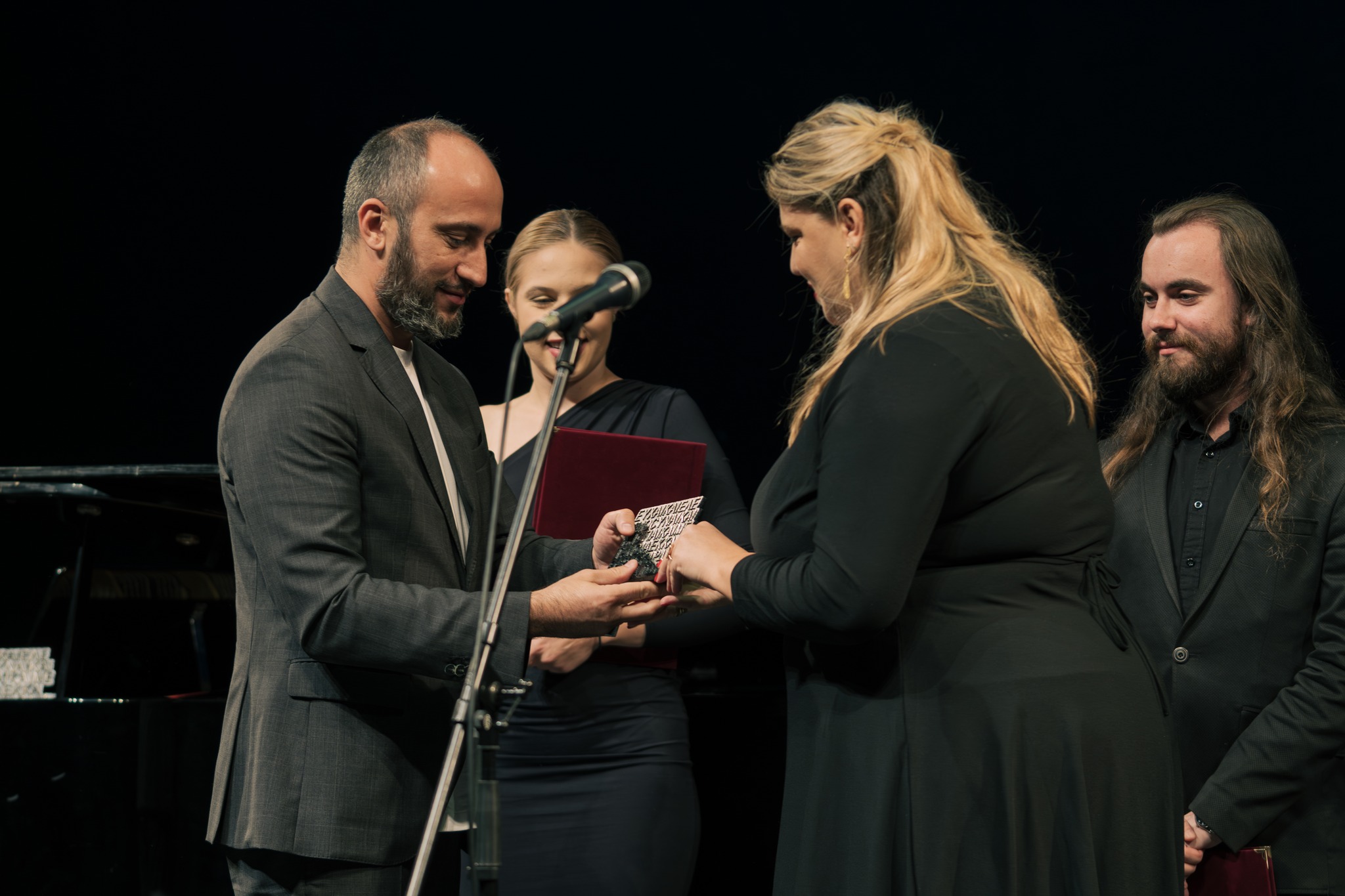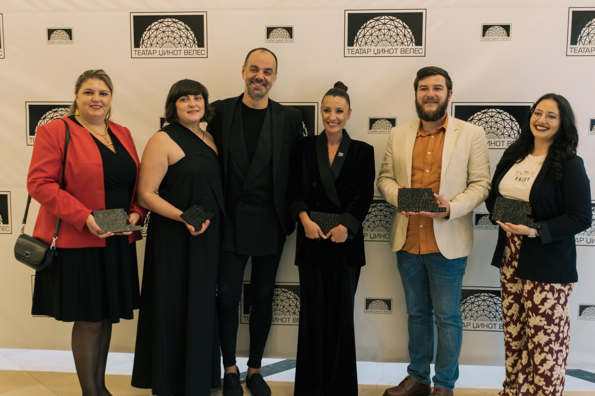 На сцената на Театър “Йордан Хаджи Константинов-Джинот”-Велес наградите приеха представители на наградения плевенски театър от Р. България и г-жа Илияна Атанасова, представител на БКИЦ-Скопие.