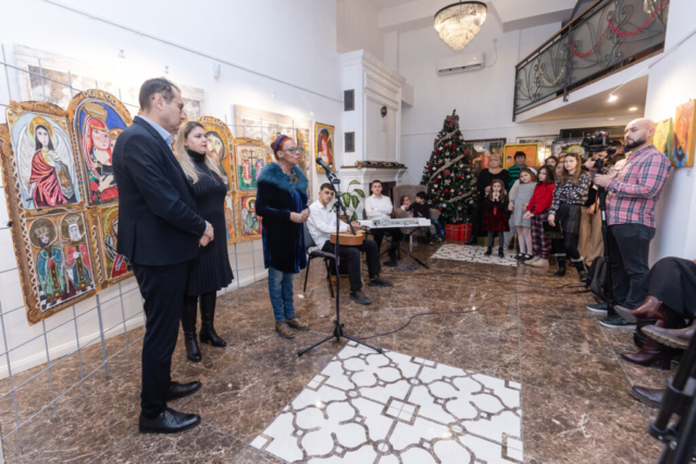 На Коледното тържество в Културно-информационния център на Република България в Скопие присъства и председателят на Сдружение „Духовно огледало“, г-жа Таня Костадинова, която поздрави гостите и благодари за предоставеното пространство в галерията на БКИЦ-Скопие, за поставяне на част от експозицията “Да бъде светлина”, съдържаща над 150 икони.