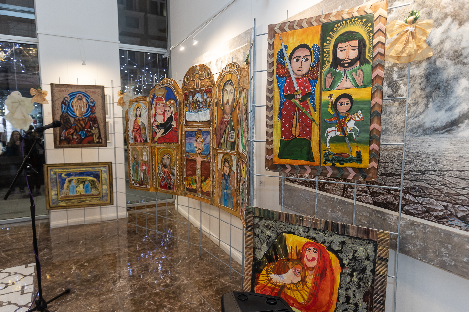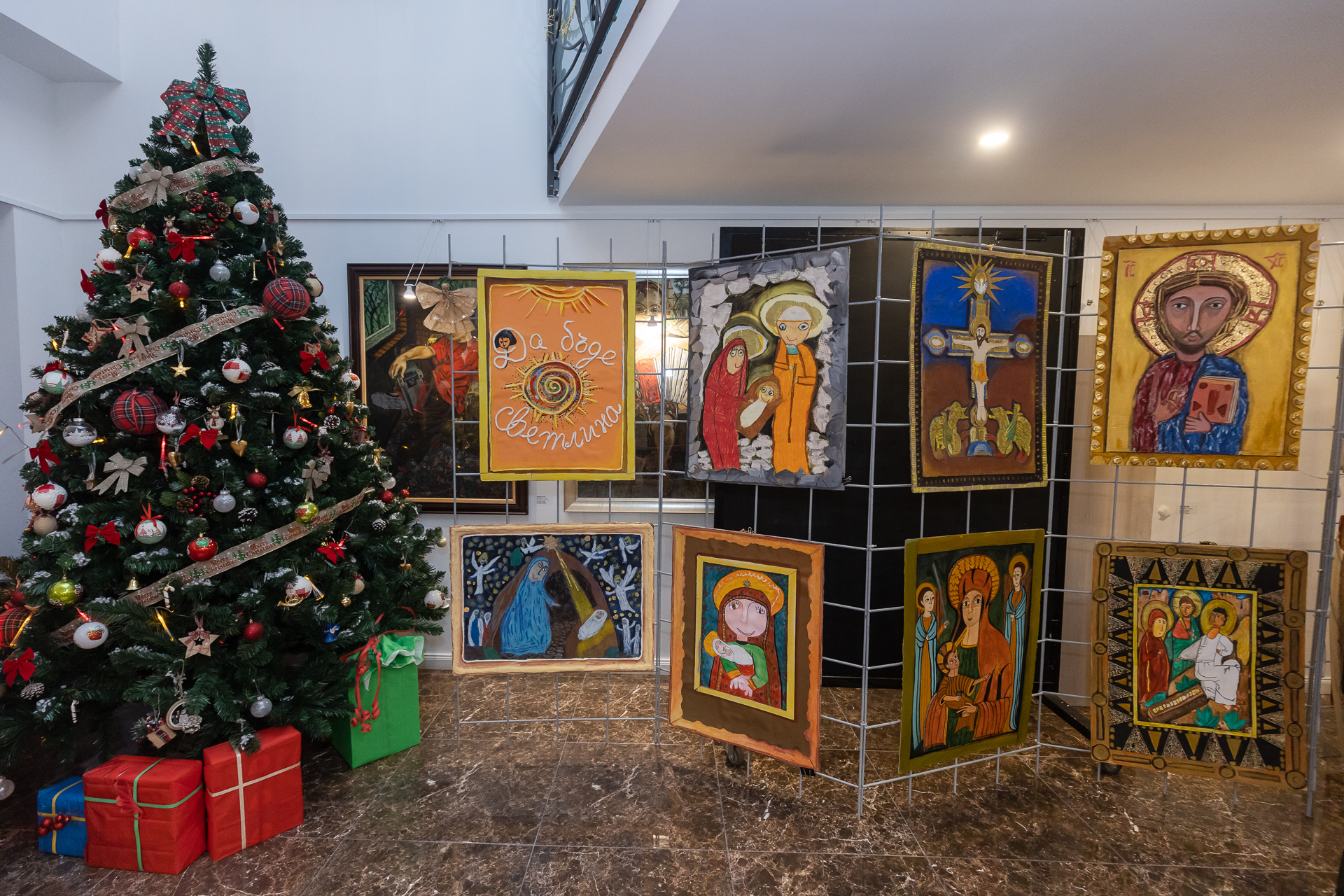 Икони, част от експозицията “Да бъде светлина”, поставени в галерията на БКИЦ-Скопие
