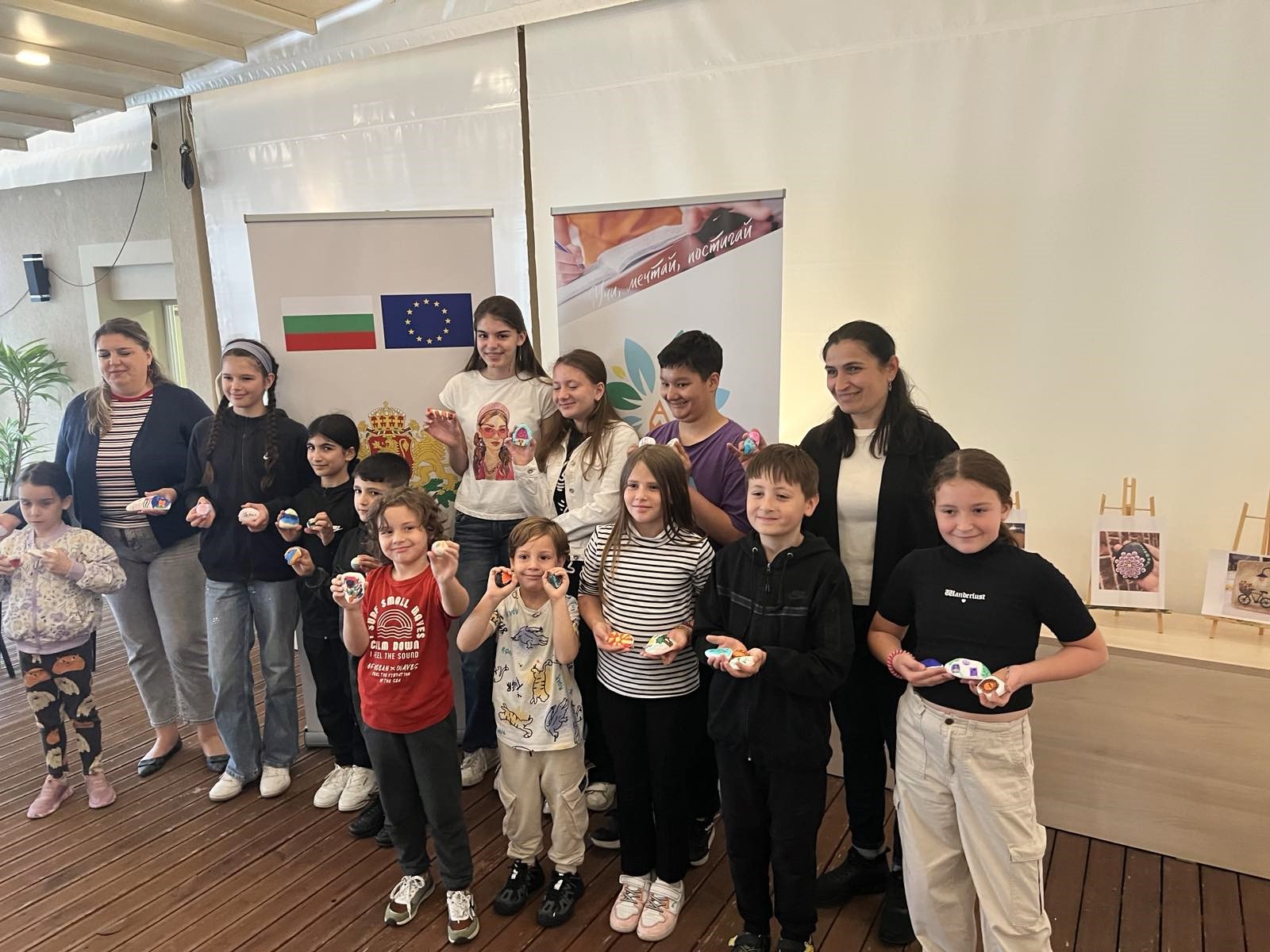 Събитието събра малки творци, които с много въображение, усмивки и ентусиазъм превърнаха обикновените камъчета в пъстри произведения на изкуството.